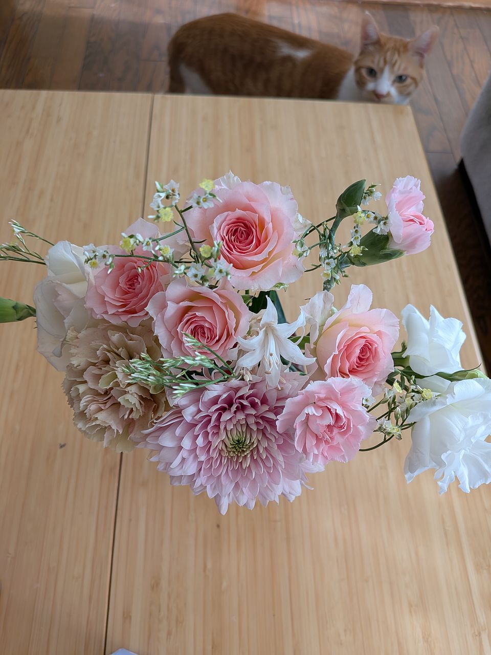 今朝、届き開封すると間違いじゃないかと思うほどのボリューム!お花も生き生きしていて茎も長いままにしてくださっていたので嬉しかったです。