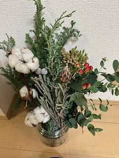初心者ですが、束ねるだけでとてもいい感じのスワッグが作れました! 自分で選んで作ることがまだできないので、とてもよかったです!そして、完成品を買うともっと高いから、お値段も、手頃で嬉しい