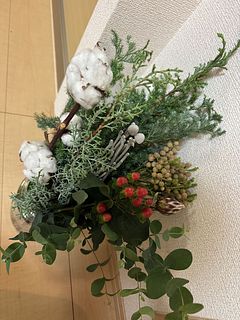 森のクリスマス、写真を見て即決しました!自分で選ぶのが苦手なのでブーケにしていただいて助かります。これからどうやって飾ろうか…スワッグにもできるのかな、そういうのも知らないのでアプリをみたりして考えます。