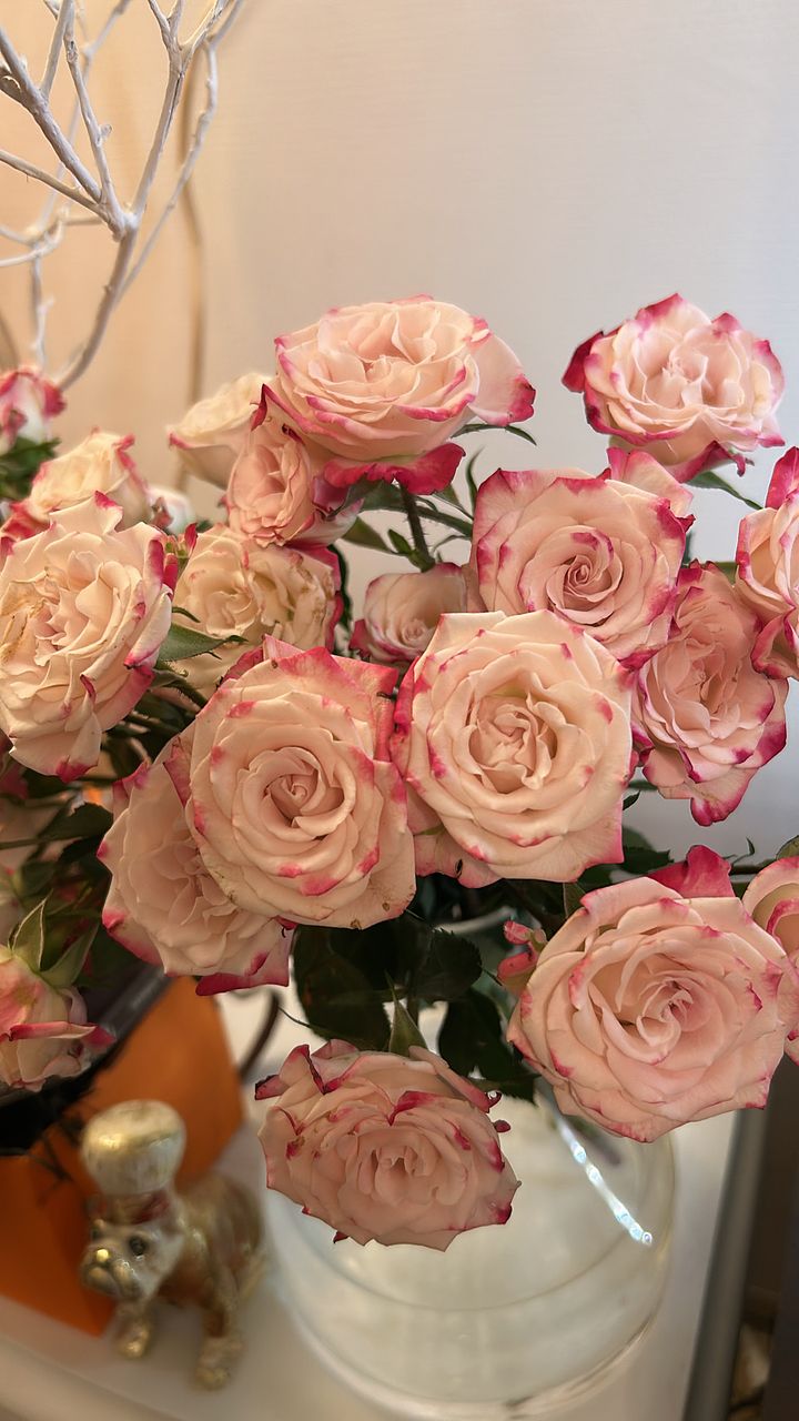 花びらの外側に濃いピンクが入る、まるでイチゴとミルクの混ざったような🍓甘いストロベリーミルクを思わせるバラ「リフレックス」。可愛らしさ抜群の姿は見ているだけでほっと優しい気分に。スプレーバラはラフにいけてもさまのなるのが嬉しいポイント。ぜひお試しを。