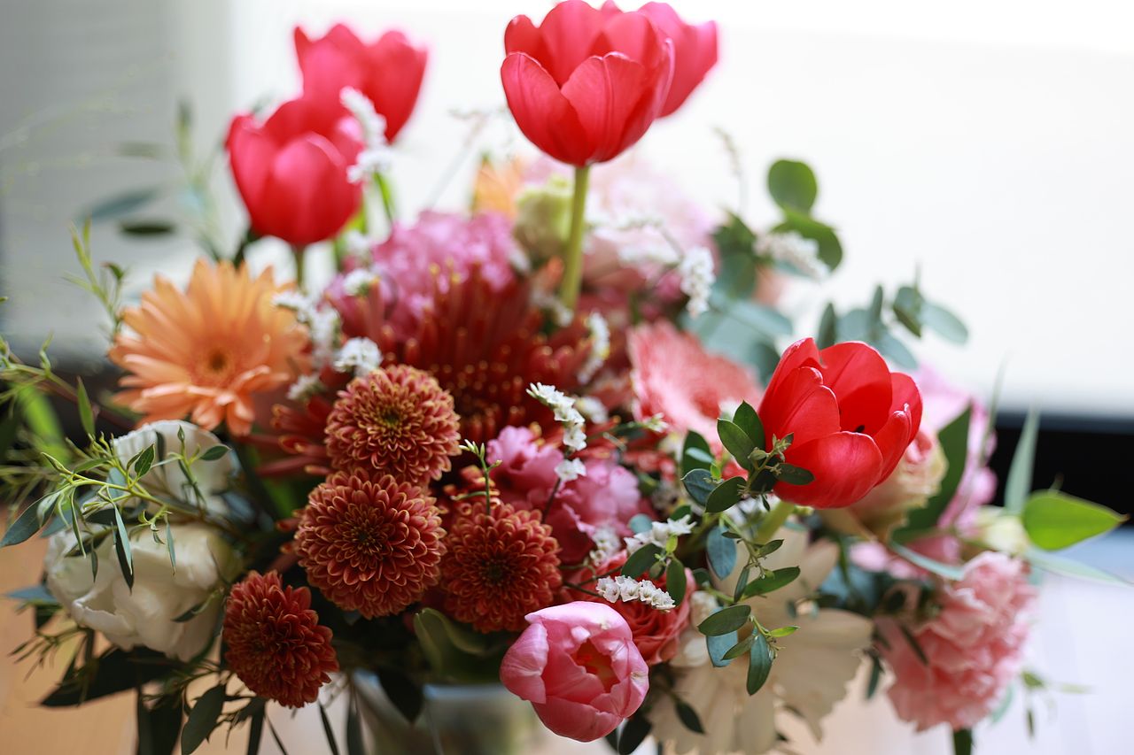 インスタライブで大人気!フローリストが束ねたブーケをお届けします🕊️チューリップがメインの華やかなブーケ🌷