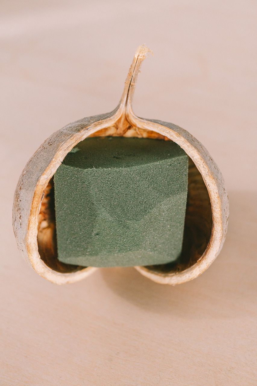 ブッダナッツにオアシスをセットします(付属の接着剤でくっつけておくと外れにくくなります)