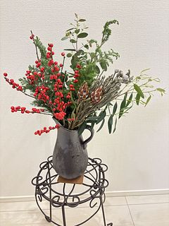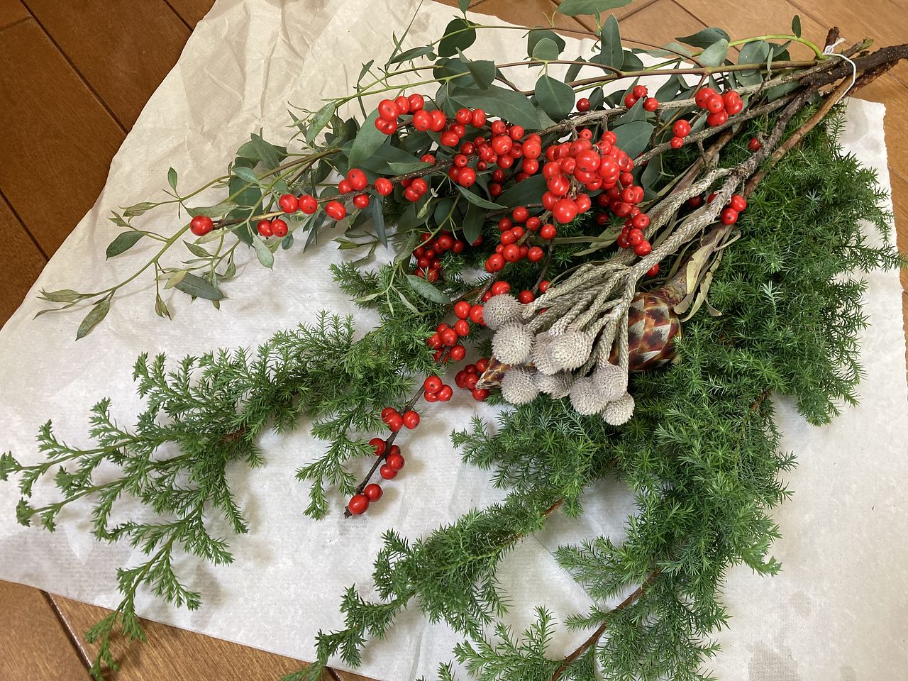 ウインターベリーが入ると一気にクリスマスらしくなりました❗️少し花瓶で飾ってからスワッグにして楽しみます。