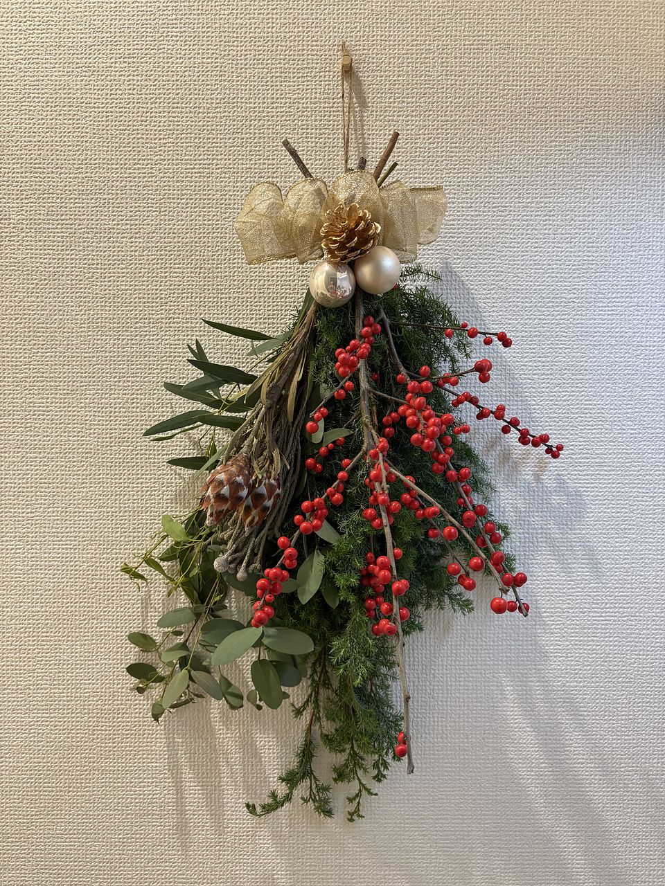 ウインナーベリーがとても映えます。 クリスマスのリボンを結んで、スワッグにして楽しみます♡