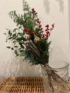 とても可愛いクリスマスを想わせるお花の数々です。花瓶に入れ楽しんだ後、スワッグにしたいとおもいます。