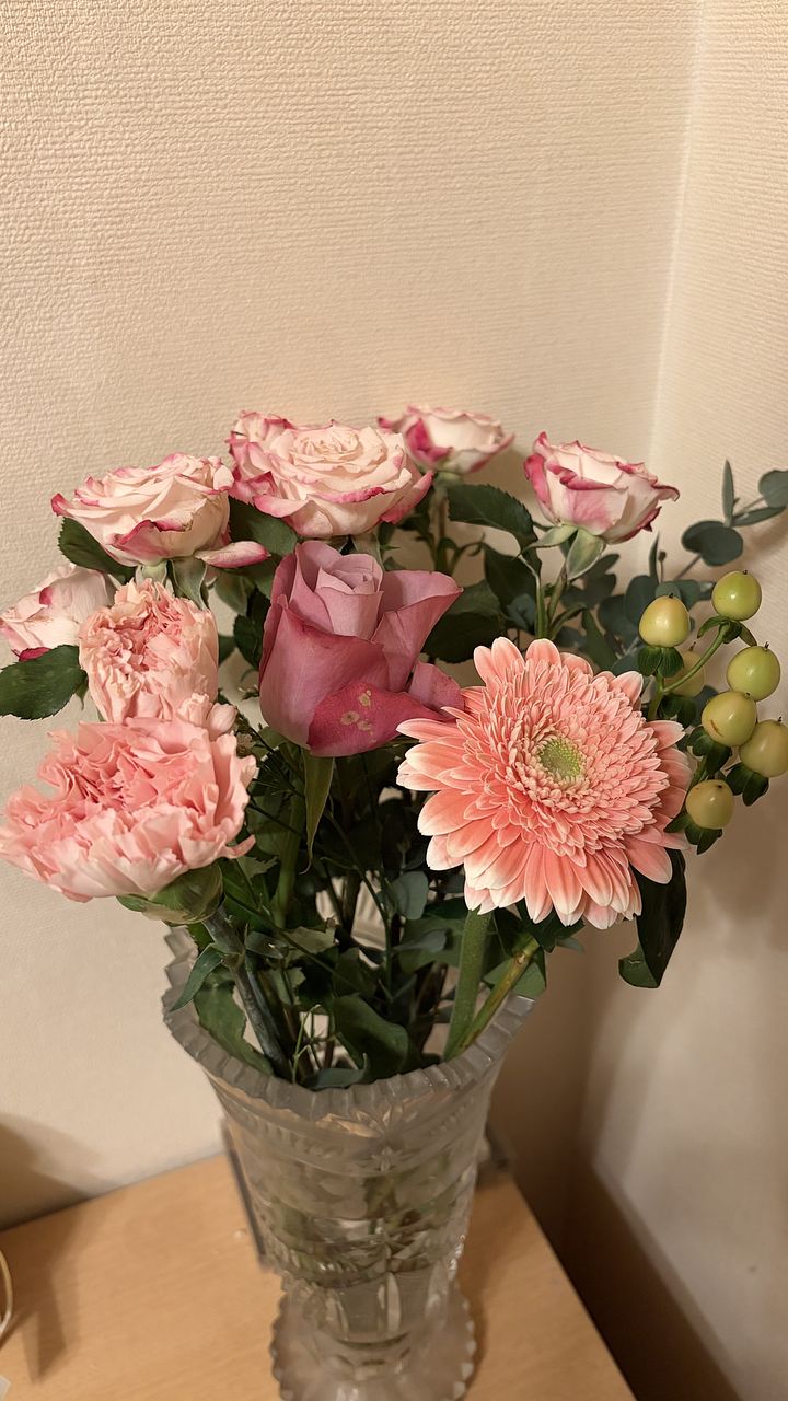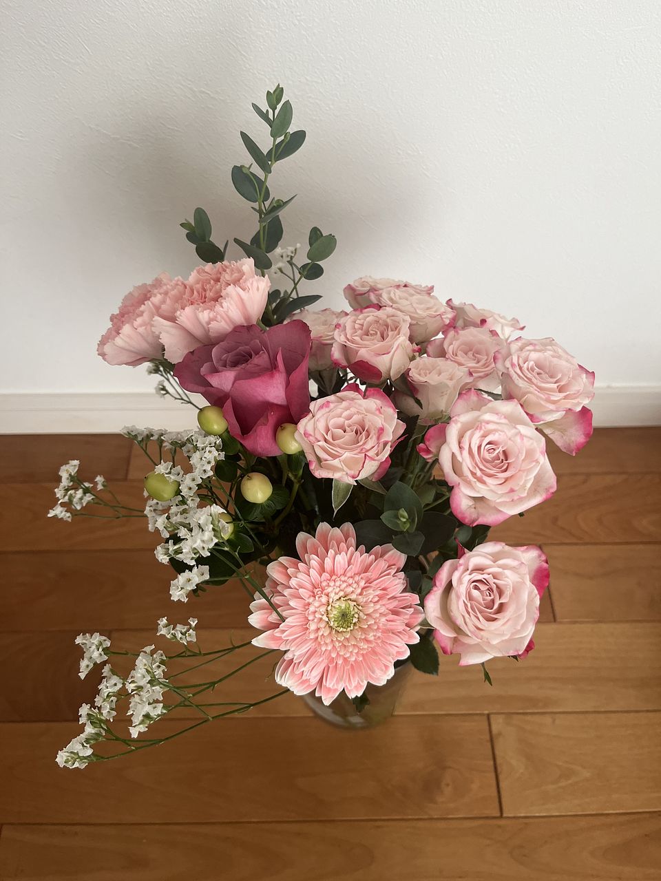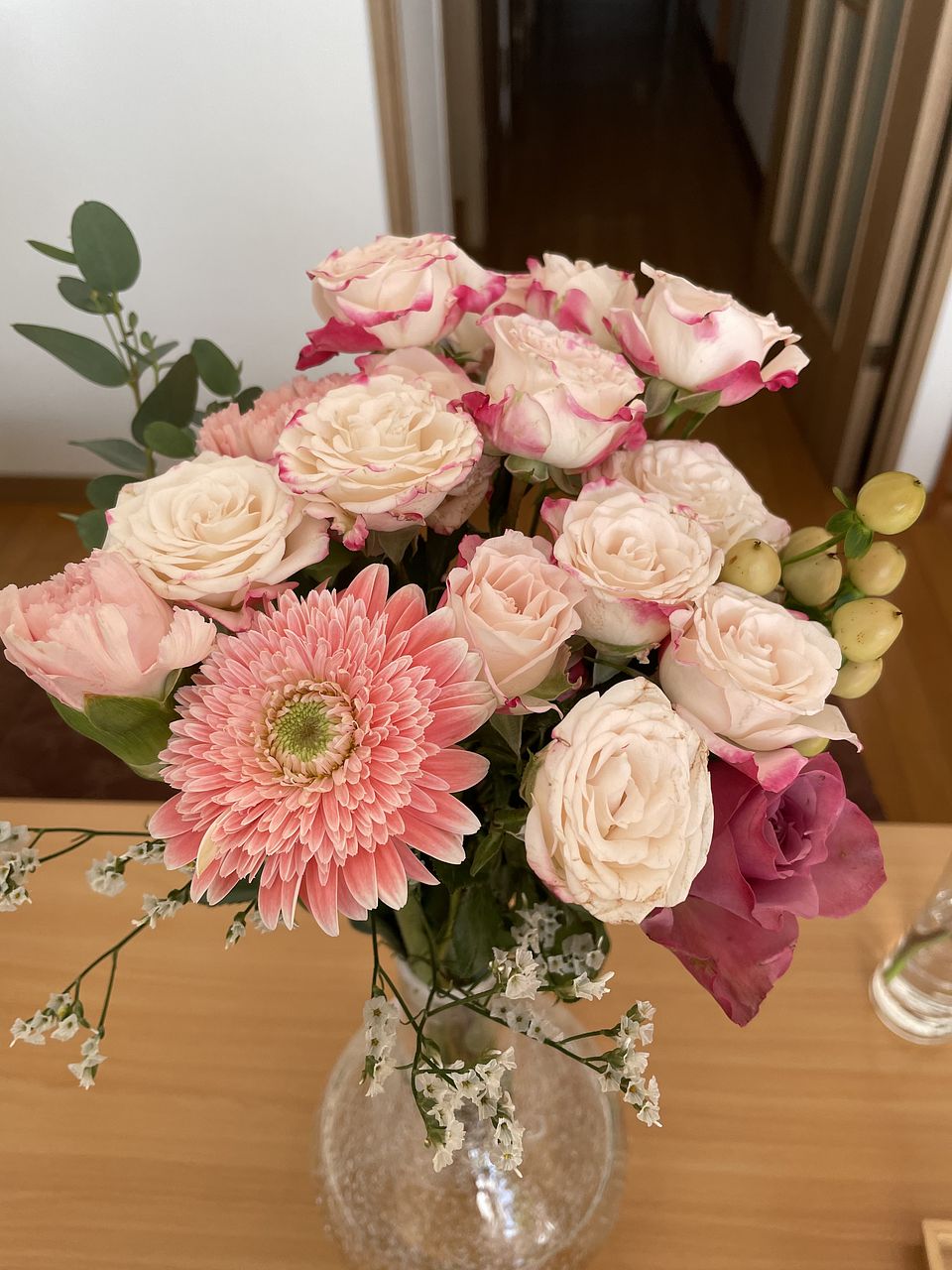 可愛いお花が届きました。優しい色で部屋が明るくなりました。