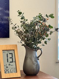 ユーカリモサモサエリンジウムもたっぷり。赤い実も可愛かった♪玄関に飾ったら、フワッとユーカリの香りがして清々しい空間になりました。 生花で楽しんだあとドライにして楽しみたいと思います。