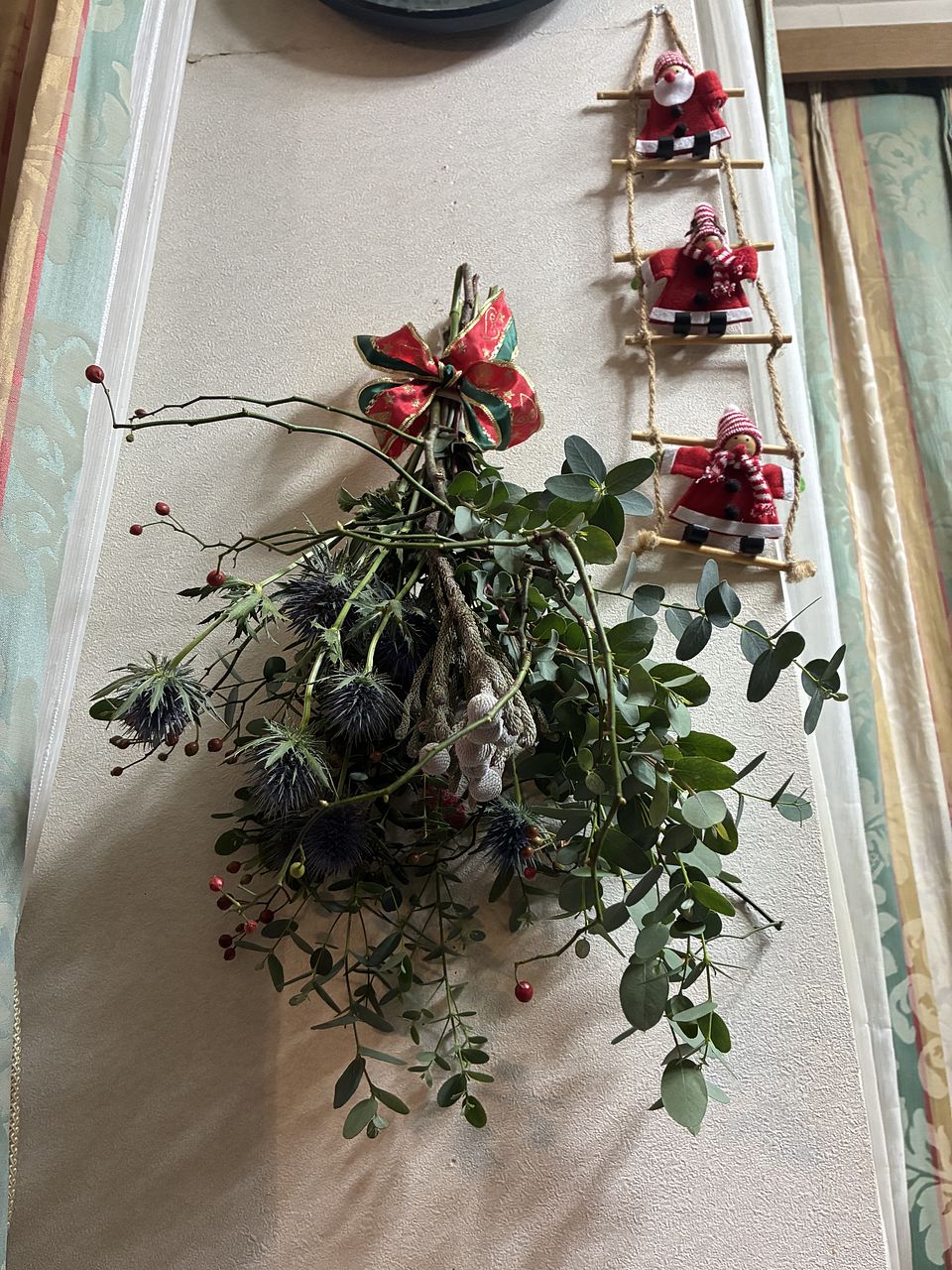 ずっと気にはなっていました。以前見たものだと赤い実がなかったと思うので、今回はそれがポイントになっていて、明るくいい感じのスワッグになったと思っています。