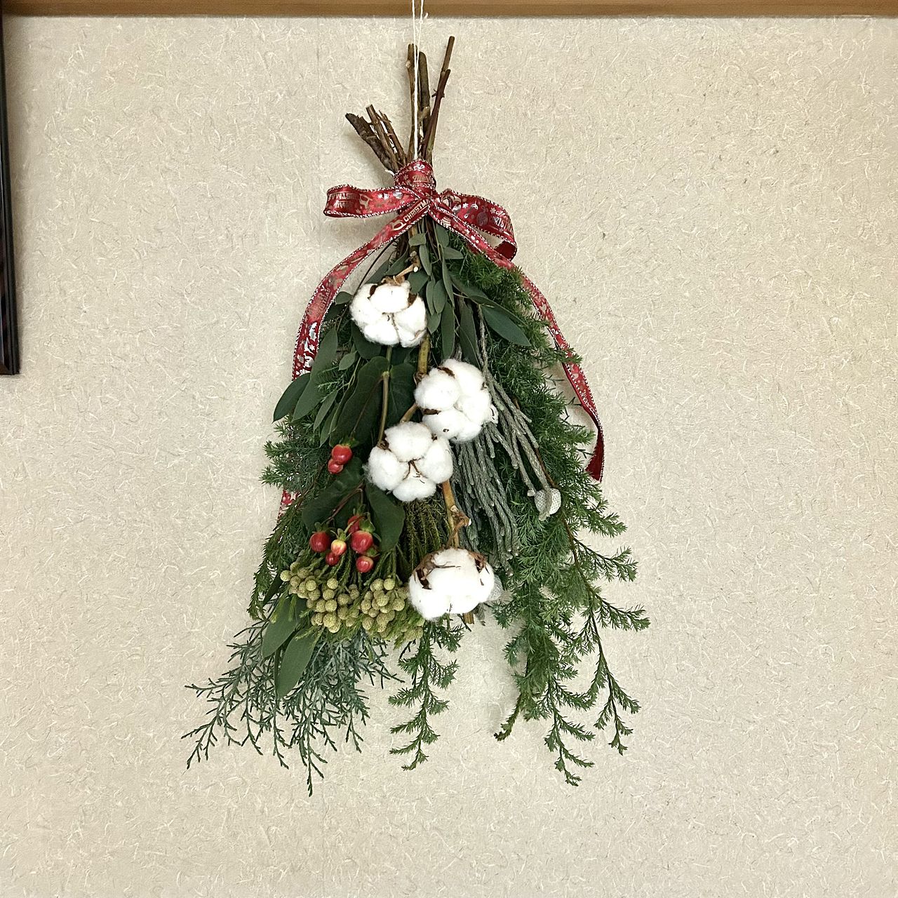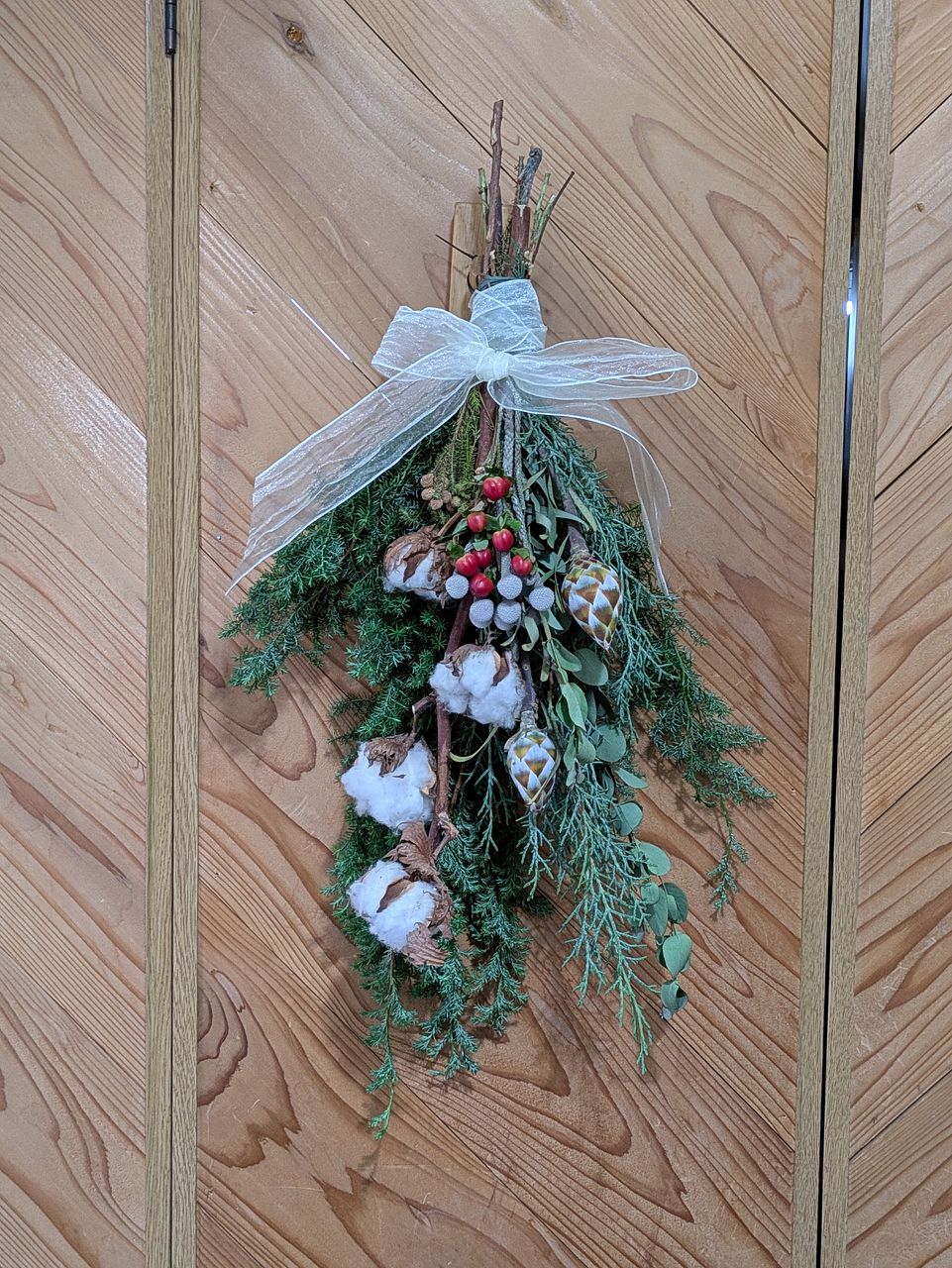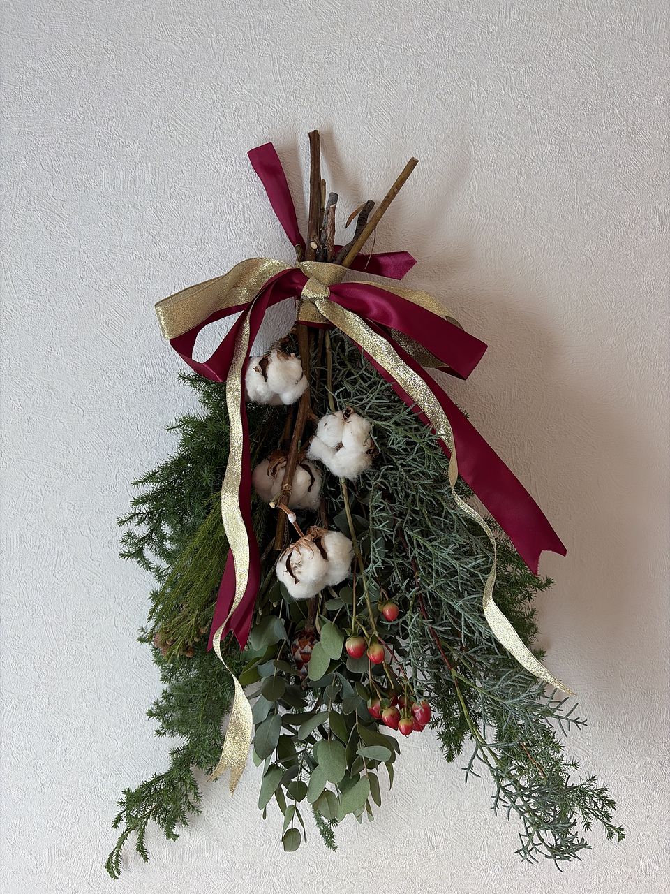 初めてスワッグ作りでした 花のボリュームもたっぷり いい香りもしてクリスマスまで楽しめます