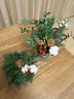箱を開けた瞬間から、ふわっと広がるフレッシュな香りに心が躍りました。 ボリュームもしっかりあって、とても質のよい花材でした。 そのおかげで、スワッグと小さなリースを素敵に仕上げることができました。 クリスマスの雰囲気をぐっと引き立ててくれる、とても満足度の高いお品です。 ありがとうございました。