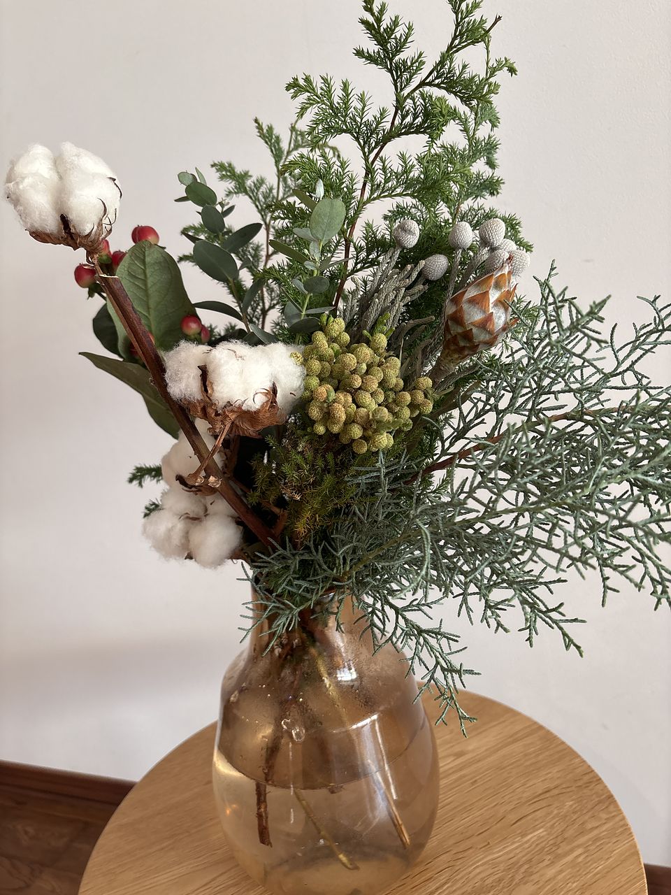 昨年取り寄せてすごく良かったので、今年も購入しました。シンプルめな色が好きなので、ニュアンスカラーの枝物は別に飾りましたが、全部いっしょでももちろん素敵だと思います!