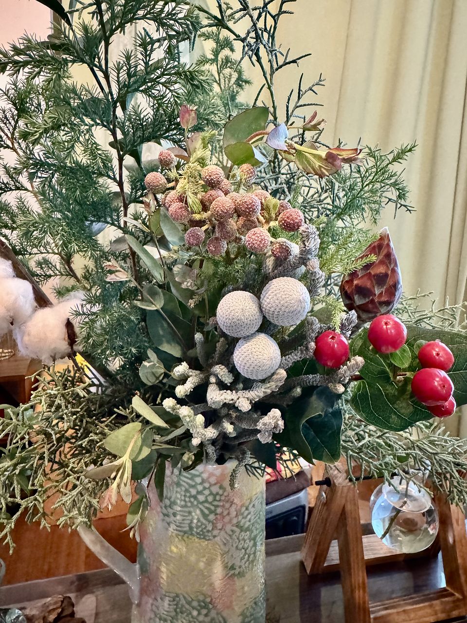 ボリュームたっぷりのブーケが届きました!クリスマス感があってとても可愛いです。
