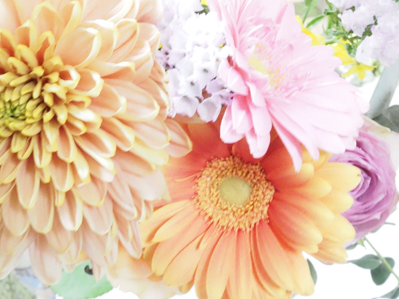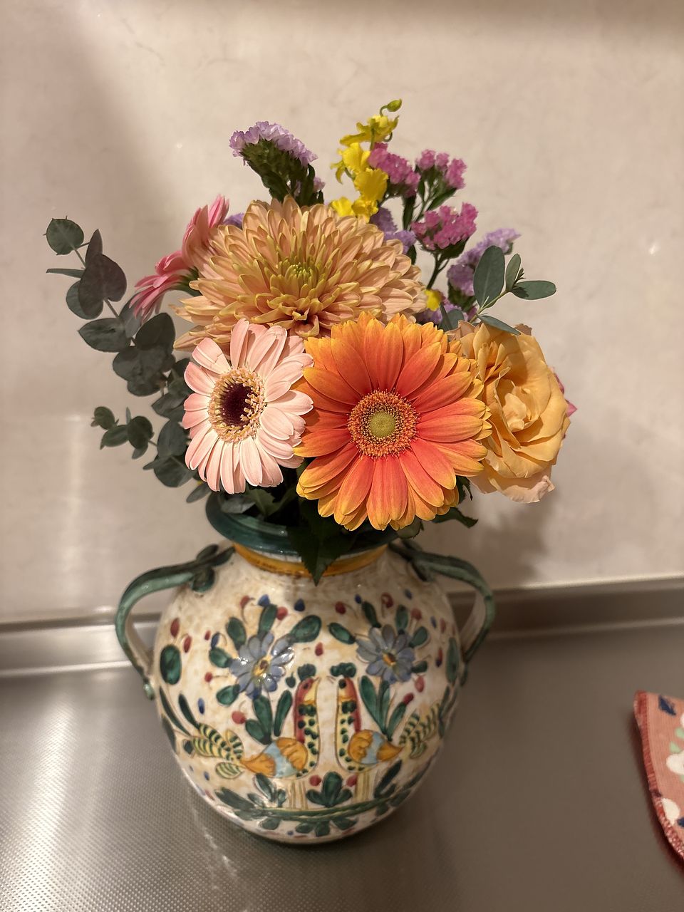 色々なお花が入ってました〜ただ、私のスキルがなく、ただ花瓶に刺すだけで、可愛さを出せてません😢