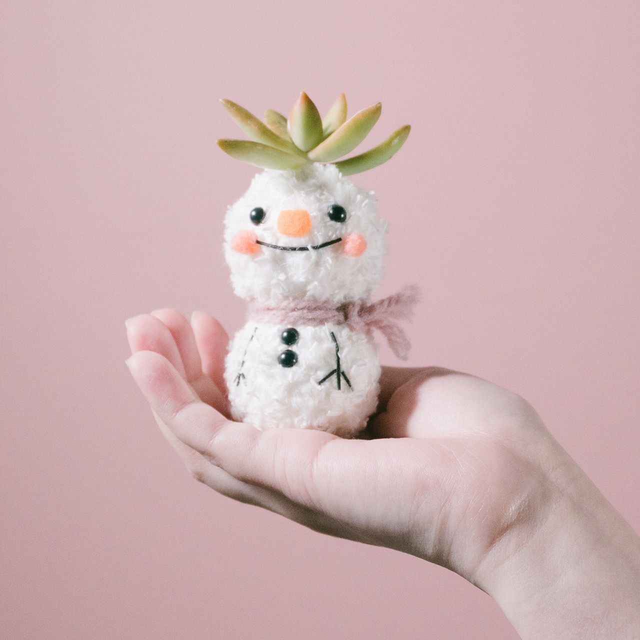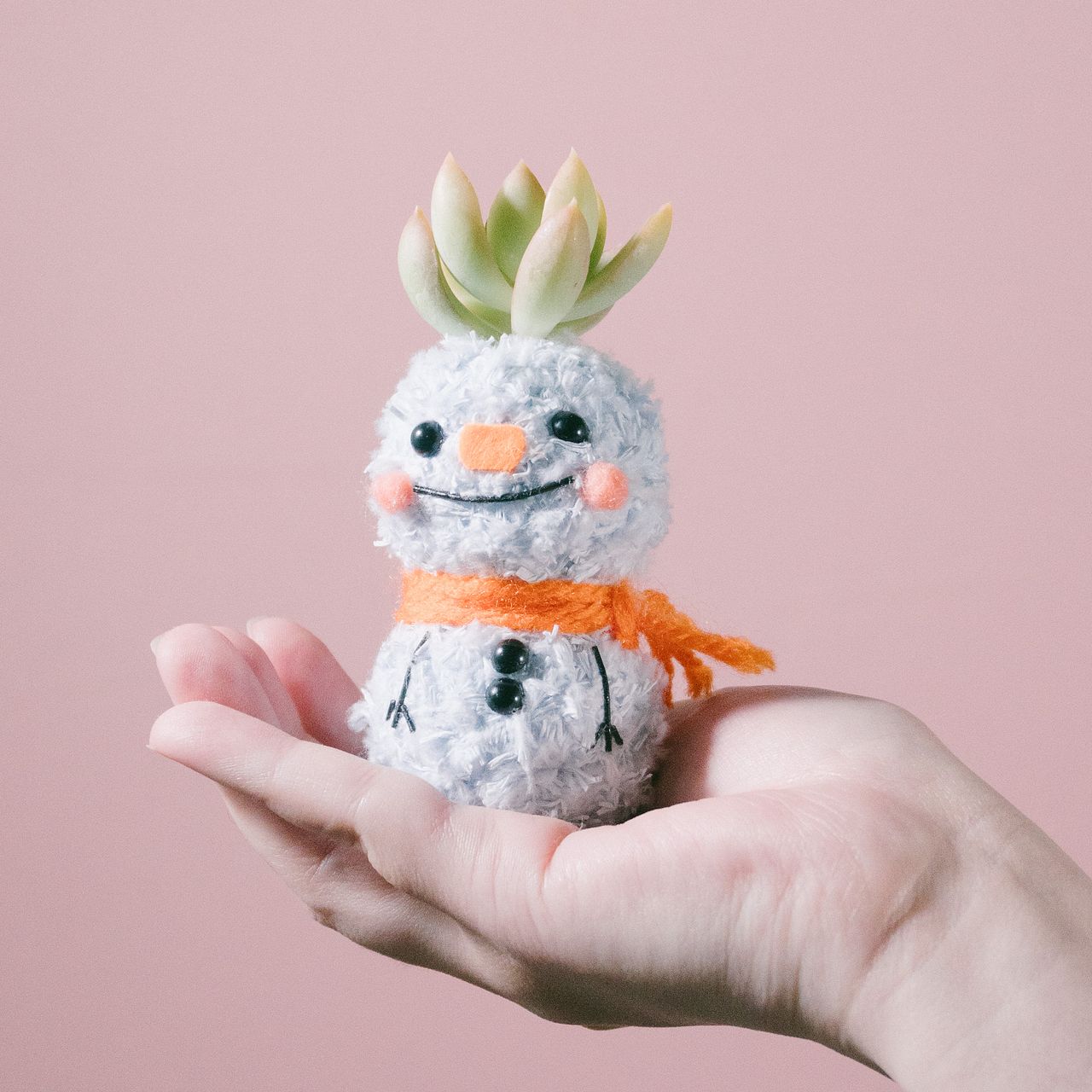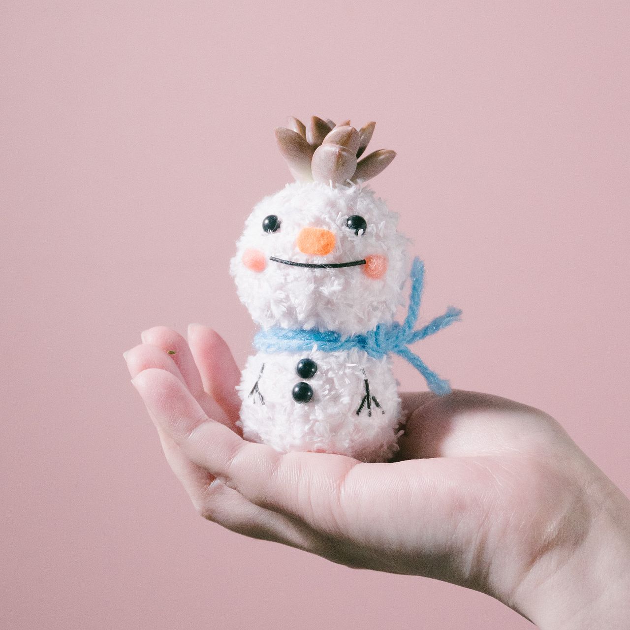 雪だるまの頭からちょこん、ミニサイズの多肉植物でおめかし⛄️