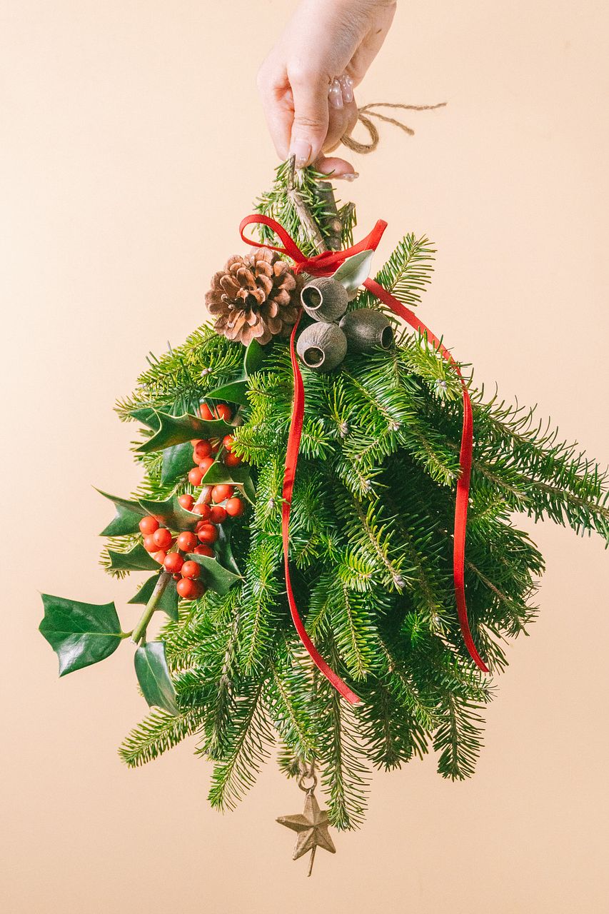 植物そのままの質感を生かした一束に、赤いベロア生地のリボンがそっと華やぎを添え、控えめながらもクリスマスらしい温かみを感じられます🎅