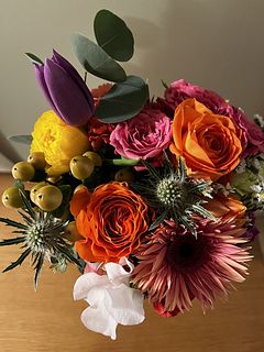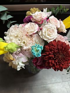 自分では選ばないビタミンカラーの薔薇なども入っていて楽しいです。 たくさんの種類の花々で心が躍ります。 ありがとうございました。