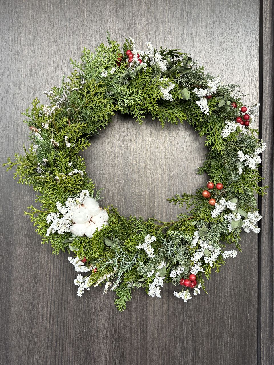毎年、楽しみに購入させて頂いております。 今年のは赤い実が3つしか付いておらず、たまたまそういう個体だったというのは理解しておりますが、全体的に色味が無く少々物足りないなく感じてしまいました。。 でも、ボリュームもあり全体的には満足しております。ありがとうございました。