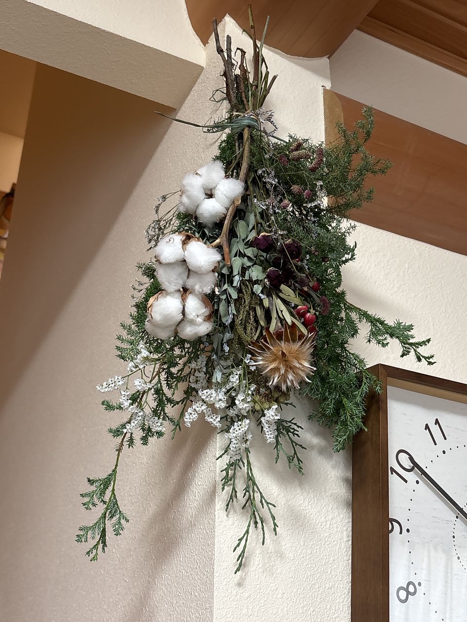 最初は生花として飾り、その後スワッグとして飾る予定です。ボリュームもあり映えます