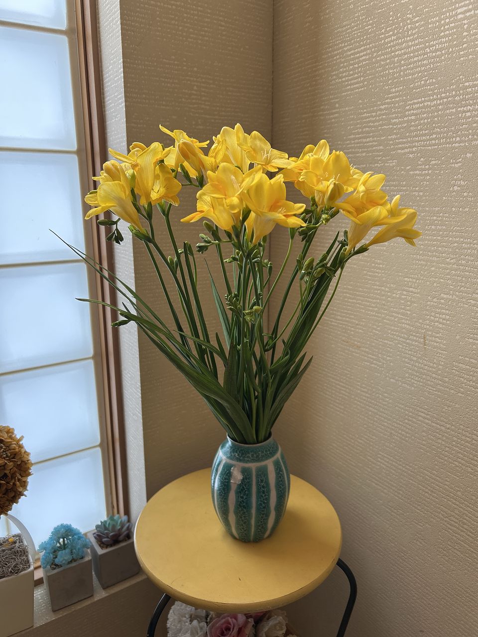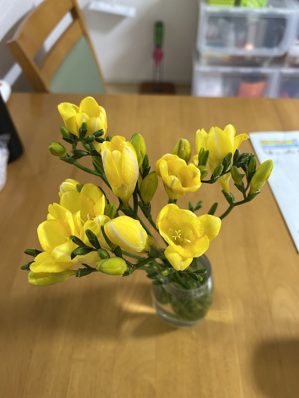 フリージアの爽やかな香りに癒されます❤️ ボリュームもあり、蕾もたくさんついてるので、 長く楽しめそうです😊