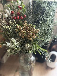 ルビーのようなバラの実がクリスマスらしいポイントに。そのまま吊るしてスワッグにもぴったり。クリスマス気分を長く楽しめます🎄