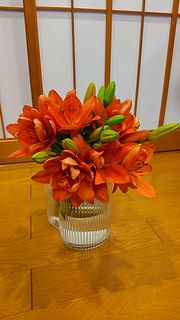 見た目的にはそこまで好みではないかなと思いつつ、4ー5日留守をするので持ちの良いユリにしてみました。帰ったら全く、枯れてもなくそのまま咲いていてとても嬉しかったです♪
