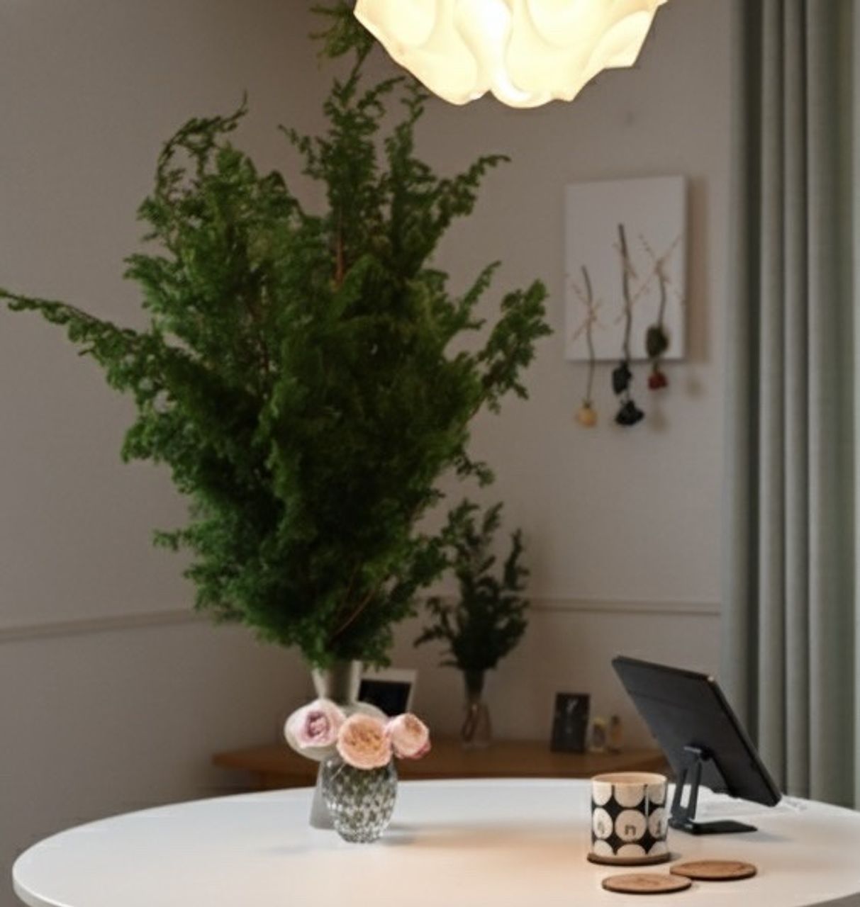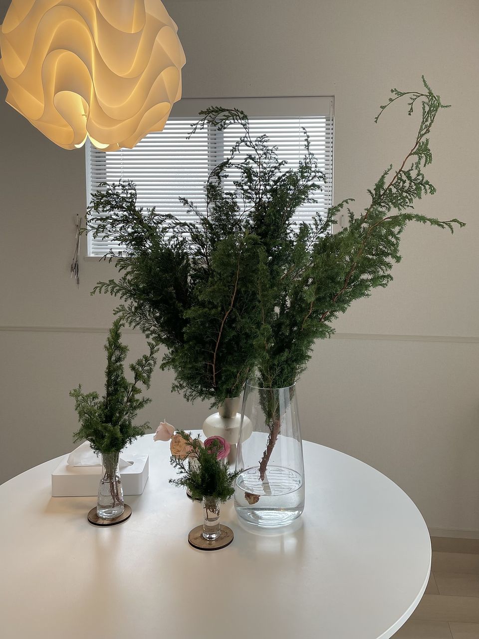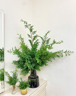 思っていた以上にボリューミーだったので1本分けて別で飾りました!(写真は1本抜いた状態です) 森の中の匂いがして癒されたのと、もみの木の葉っぱって柔らかいんだなとちょっと驚きました。 長くもって欲しいな〜!!