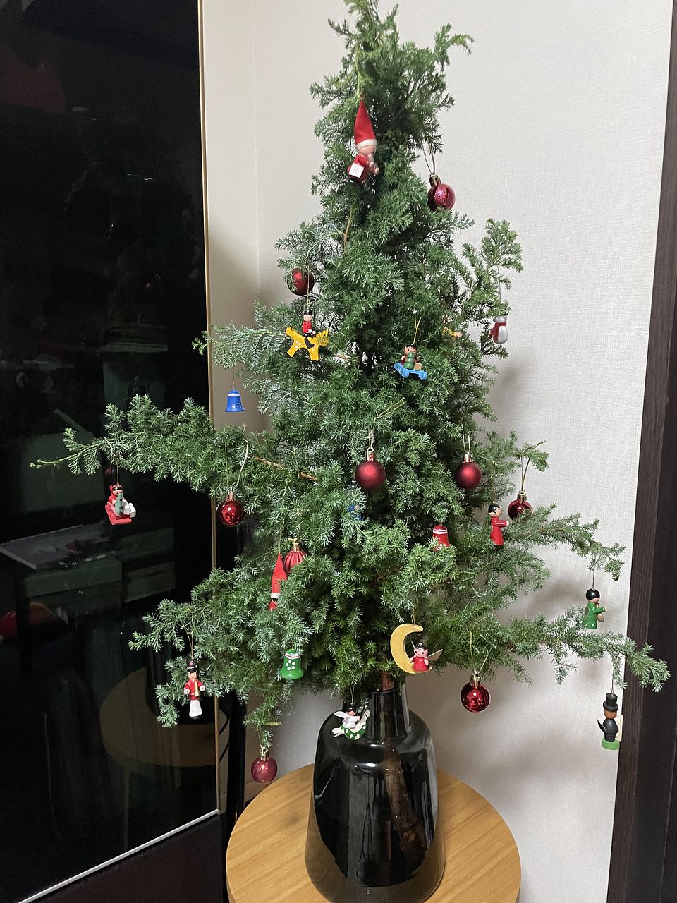 前回購入したもみの木と一緒に活けました。 オーナメントも飾ってみました。