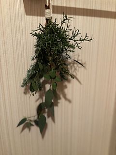 針葉樹の深い緑とユーカリのやさしい色合いを束ねて、冬の風景をそのまま閉じ込めたような一束を、ご自身の手で仕上げていただけます。