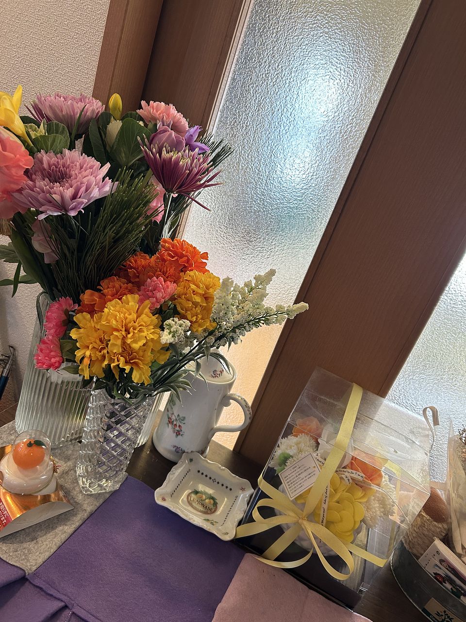 あらかじめ可愛いくて元気なお花を組み合わせてあるので届いたら楽に飾れるのが良いですね💖