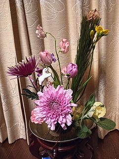 一緒に花瓶を買ったので生けてみました。菊がとても立派でした。ボリュームもあり華やかです。