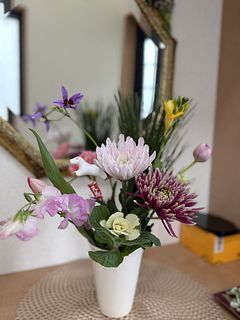 今まで完全に「和」のお花を生けてきたのですが初めての試みでした。とても軽やかな雰囲気でgood❗️です。