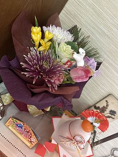 ありきたりのお正月の花で無く変わったブーケにしたくて購入しました。 チューリップが入ってい洋風なお正月のブーケでしたよ。 来年も素敵なお花をお願いします。