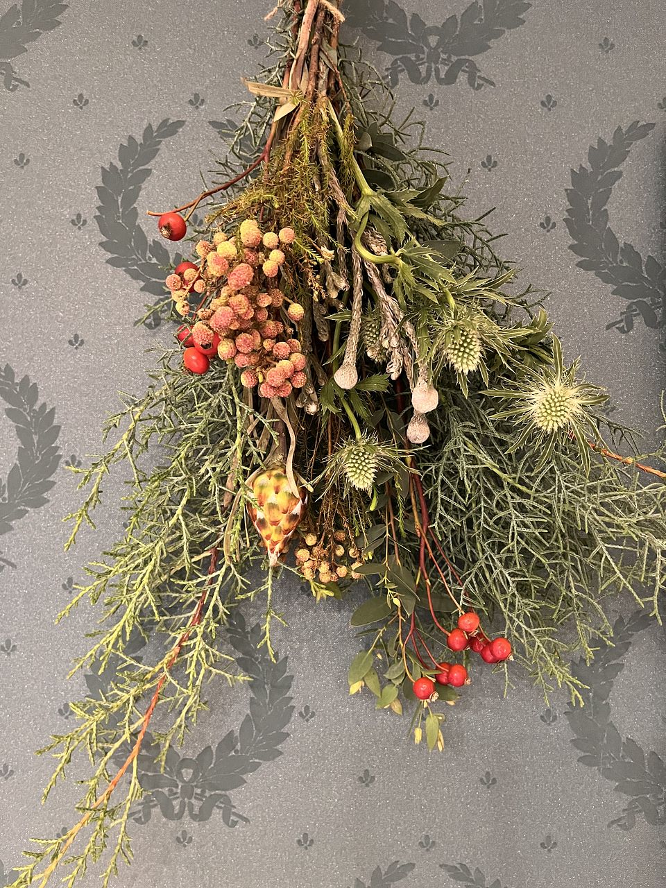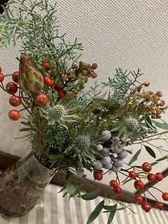 はじめて注文しましたが、届いて箱を開けたらとてもよい香でした。個性的な花材ばかりで見ていて飽きないです。しばらく飾ってから、スワッグにしてみようと思います。