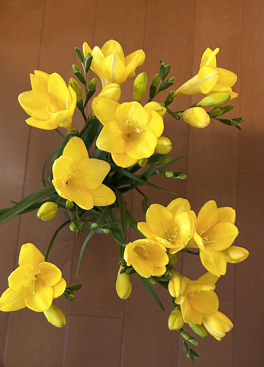 フリージアの爽やかな香りに癒されます❤️ ボリュームもあり、蕾もたくさんついてるので、 長く楽しめそうです😊
