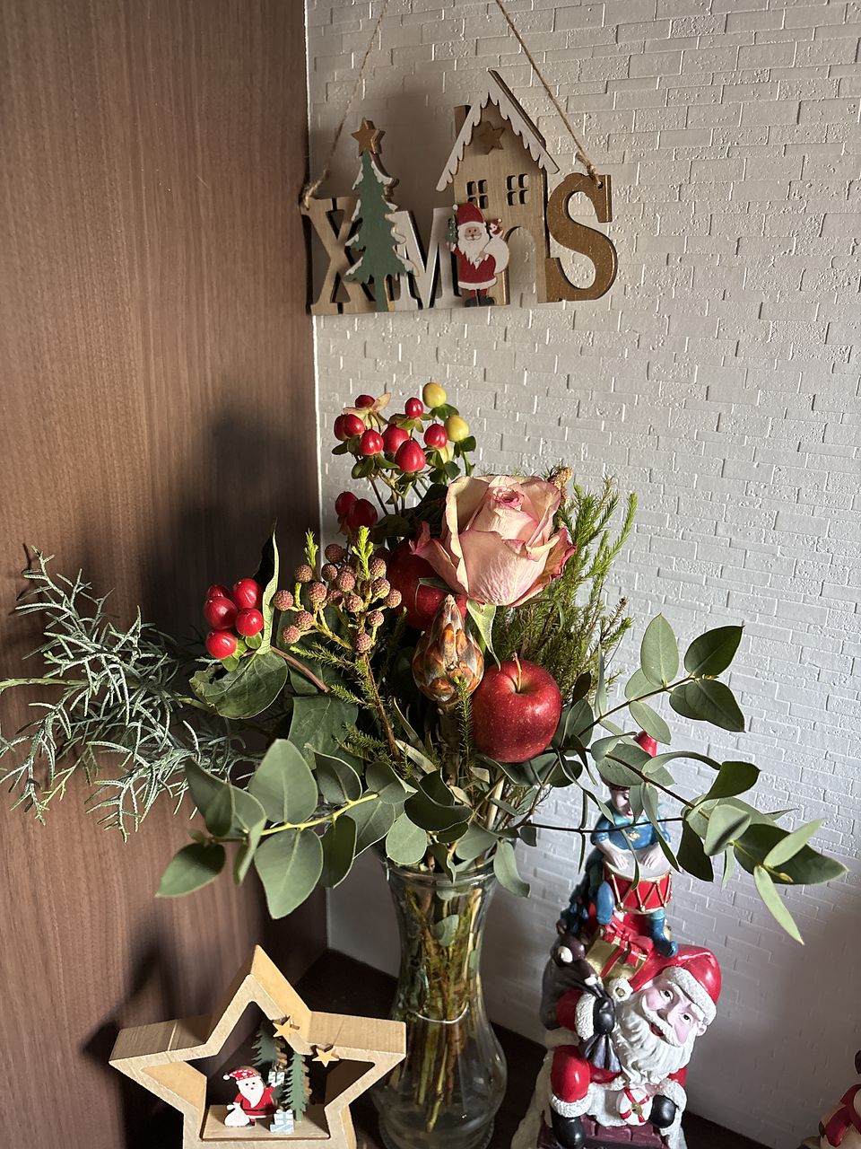 とっても素敵なchristmasらしい花束が 届きました( •ᴗ• )一気にお部屋が クリスマスになりました。