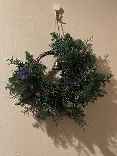 冬の森の気配をそのまま閉じ込めたような、三日月型のクリスマスリース🌙🎄