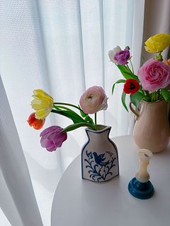 可愛いチューリップとラナンキュラスが届きました。色合いがとてもステキです。 以前FLOWERさんで購入した花瓶にベストマッチでした(^-^)/