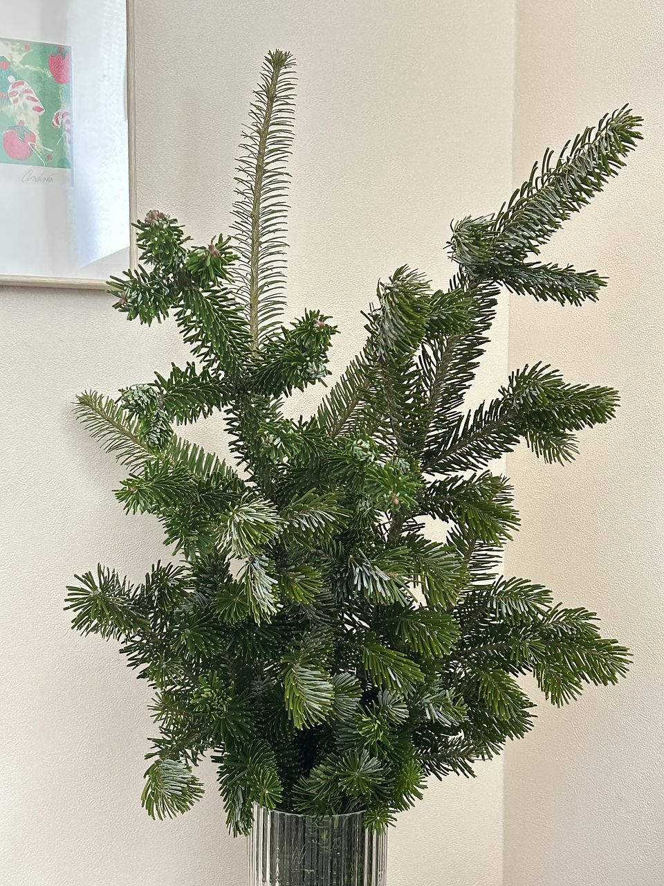 フレッシュな枝が3本届いたので、剪定してリアルクリスマスツリーに🎄 とってもかわいいです♡