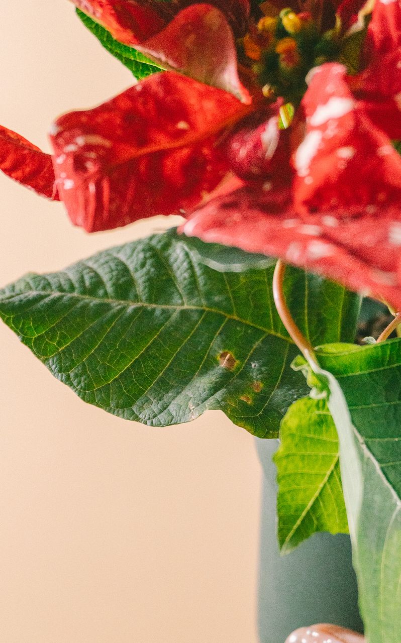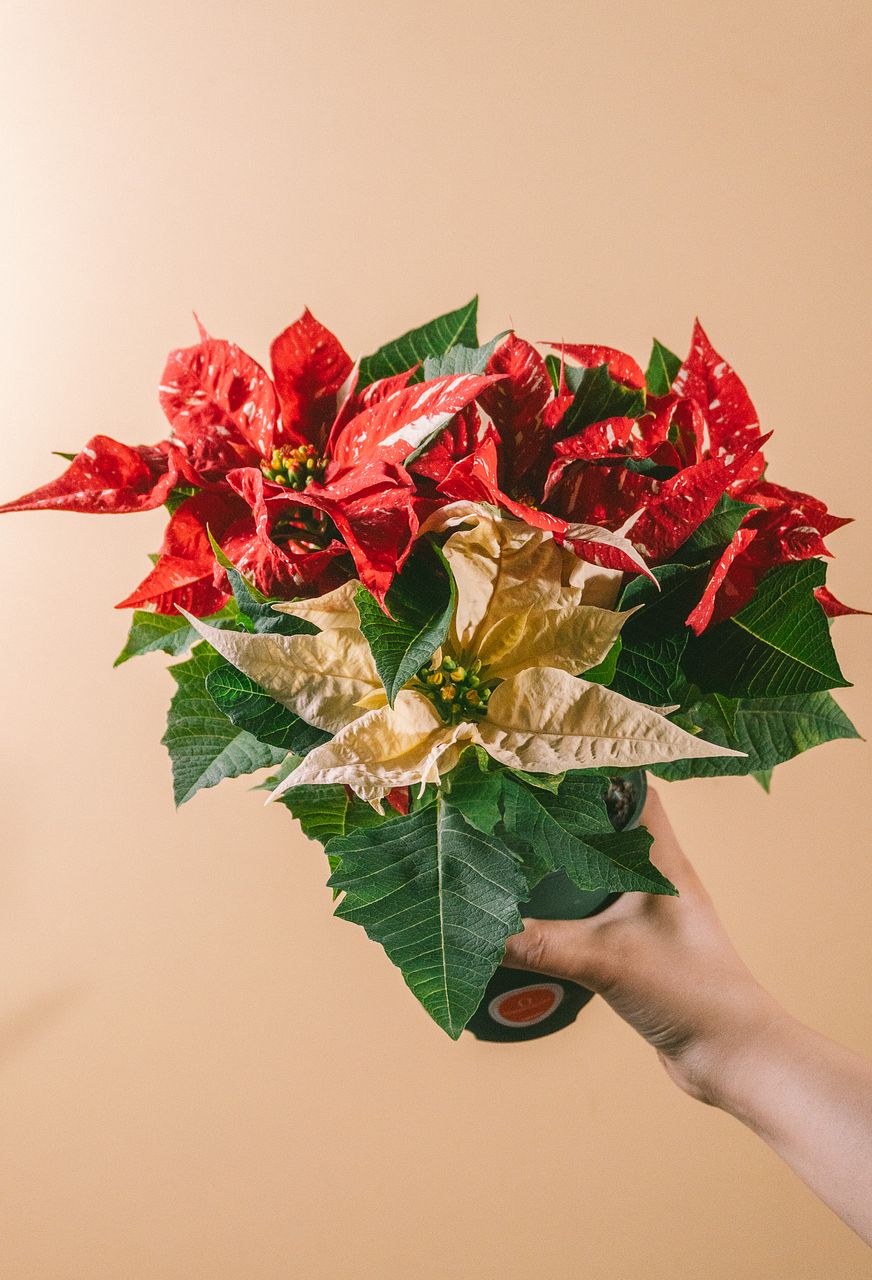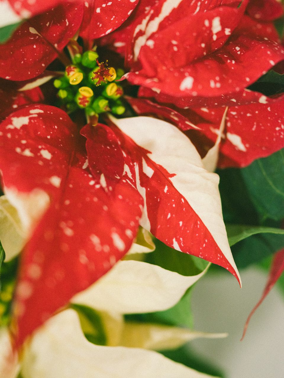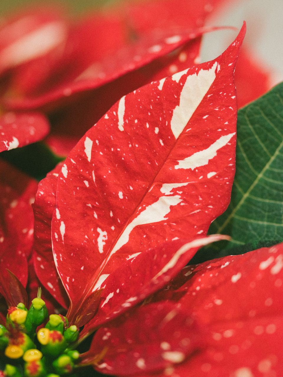 赤いポインセチアの花言葉は「祝福」「幸運を祈る」。今年は少し珍しいポインセチアを飾ってみて❣️
