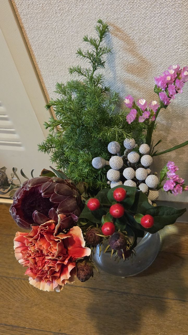 色味は秋から冬のイメージでボリューミー!!お水をあげて少しずつ愛でたいと思います♡