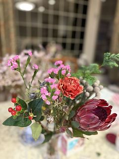 プロテアが綺麗な赤色でとても可愛かった。ボリュームもあって満足です🤭