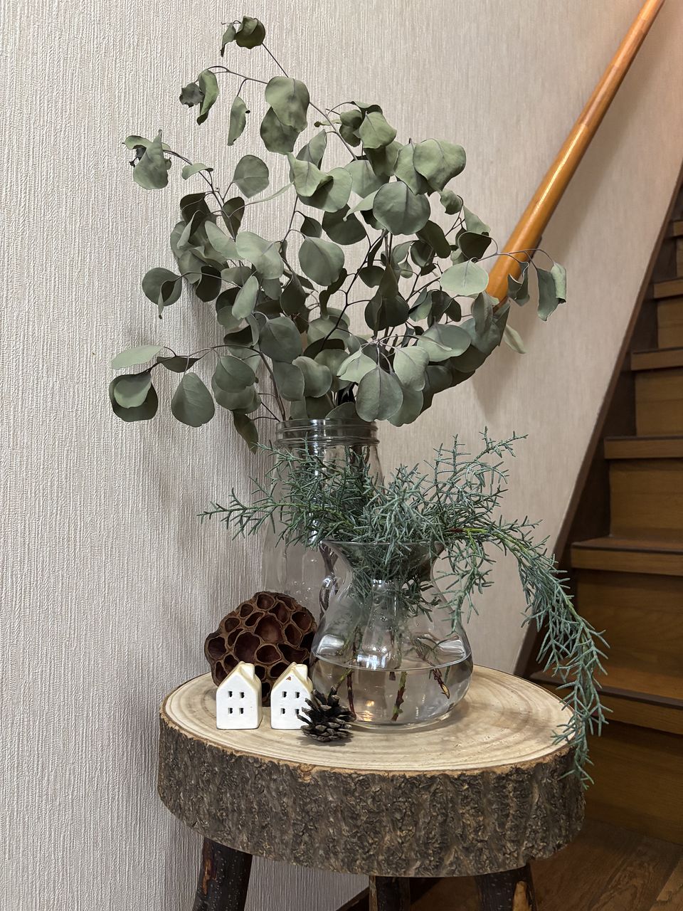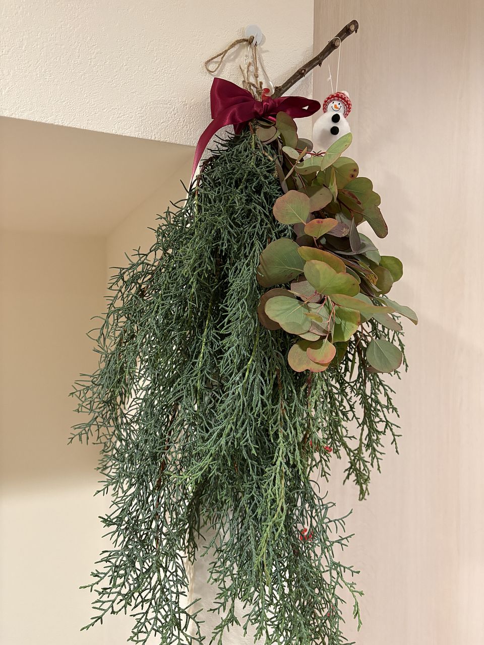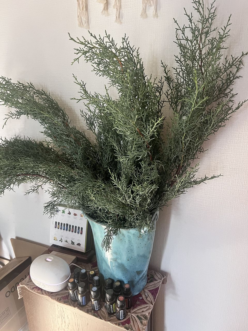 リビングにいて森の中にいるような香りでとても癒されます。 半分は花瓶に、半分はスワッグにしました。 クリスマスまでに飾り付けもしようと思っています🎄