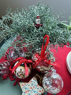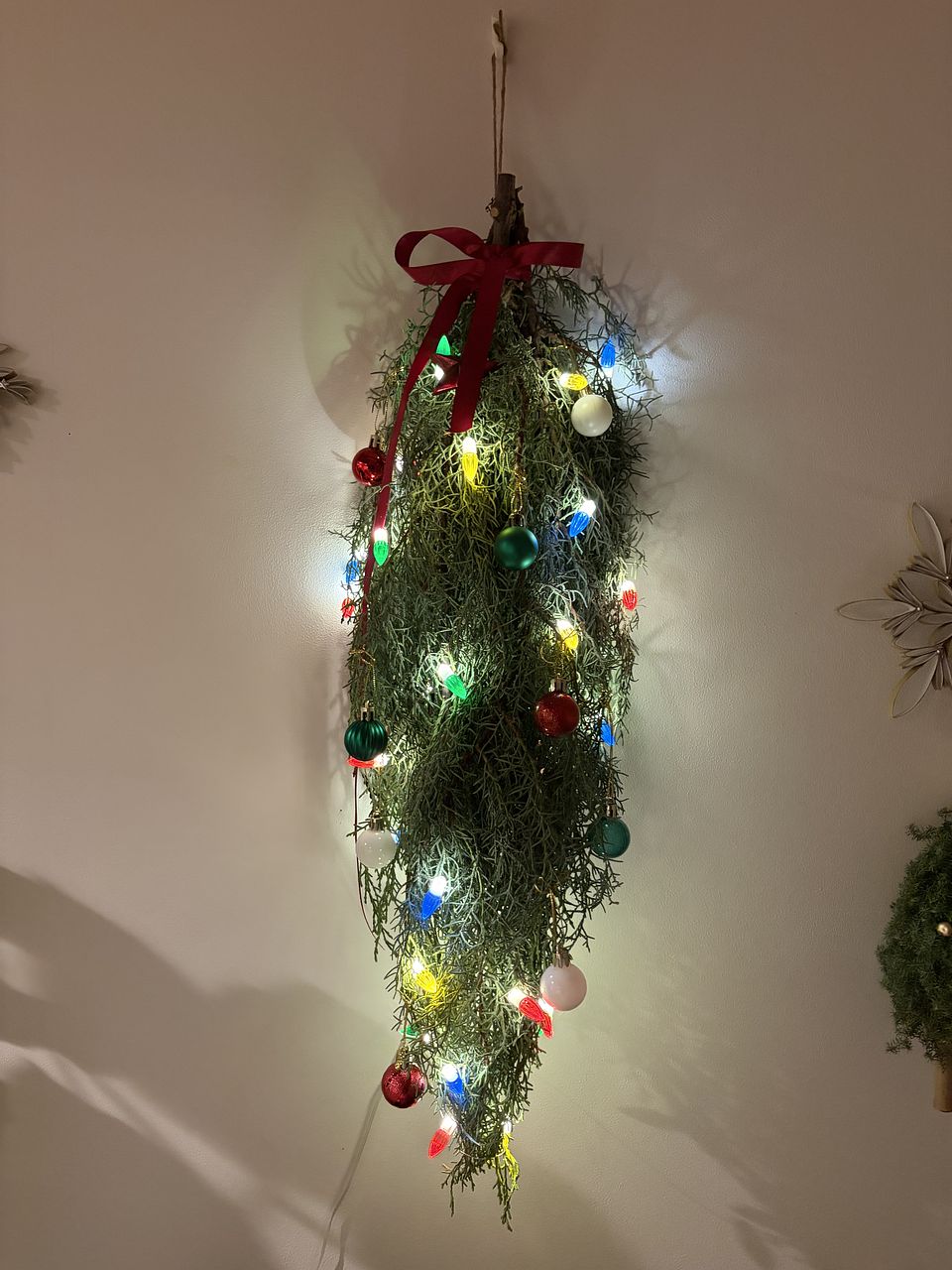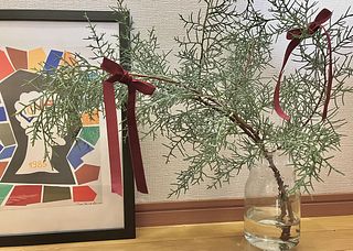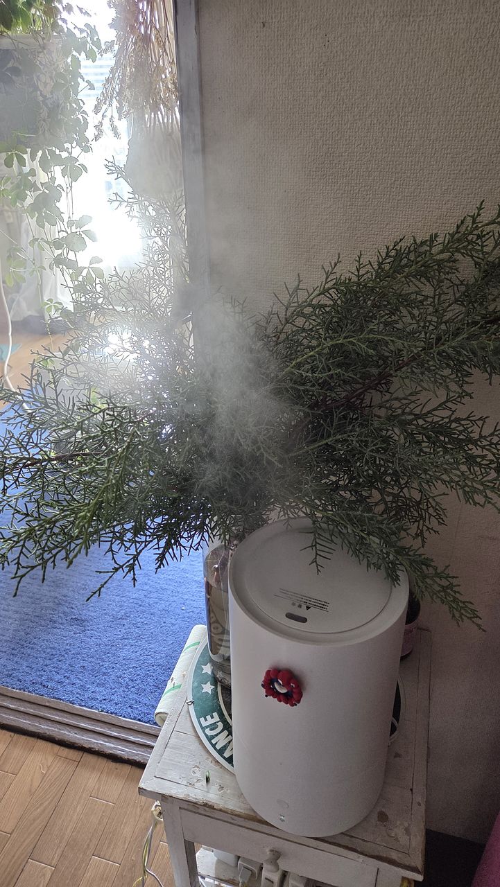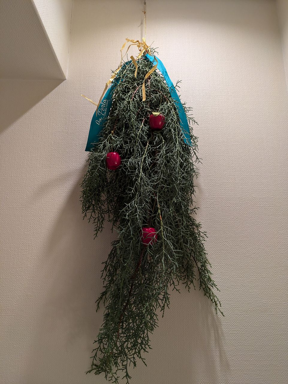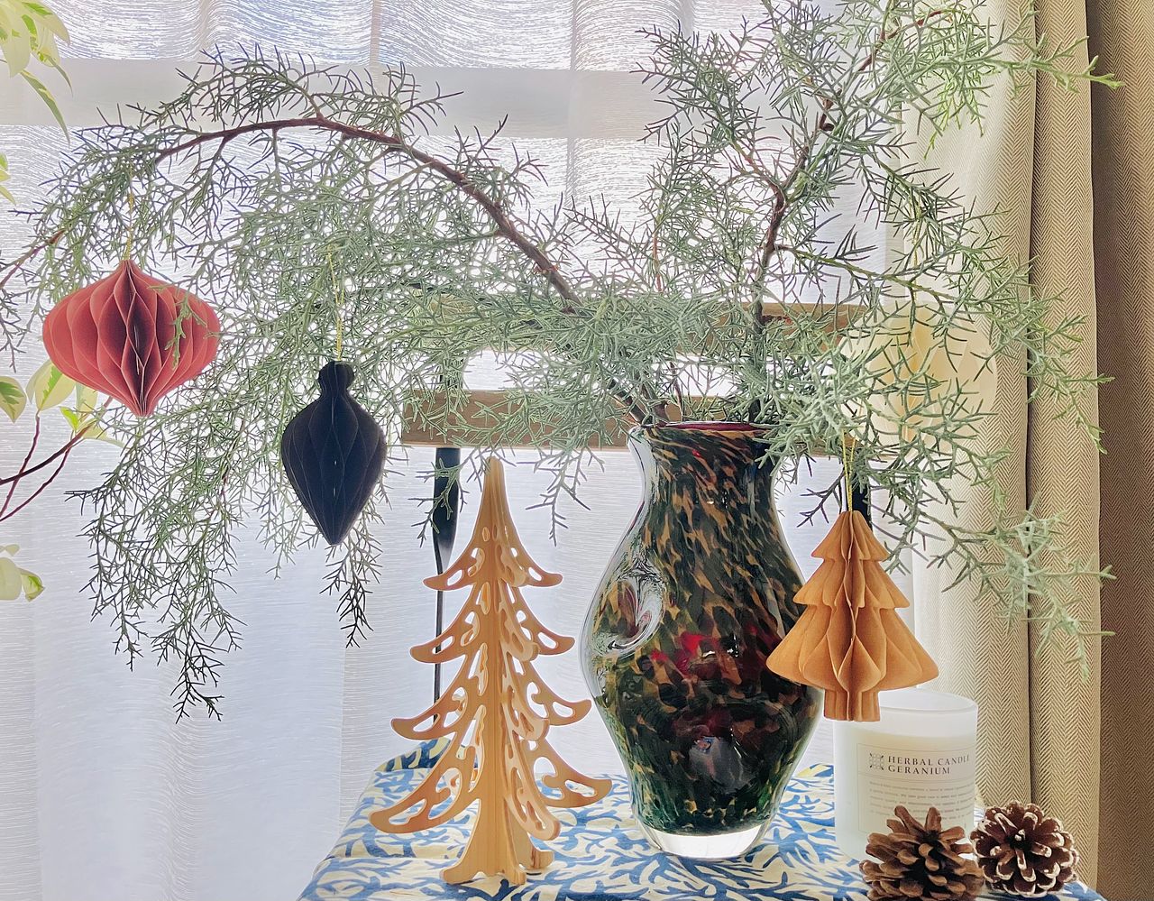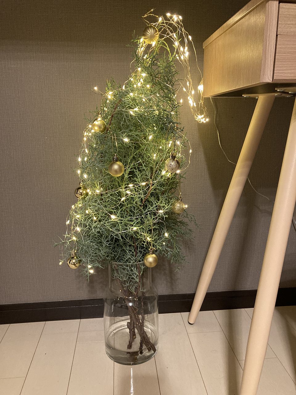 部屋中良い香りが漂い森の中にいるみたい、とても癒されます。 クリスマスように飾り付けてみました。 落とした小さな枝はミニツリーに🎄