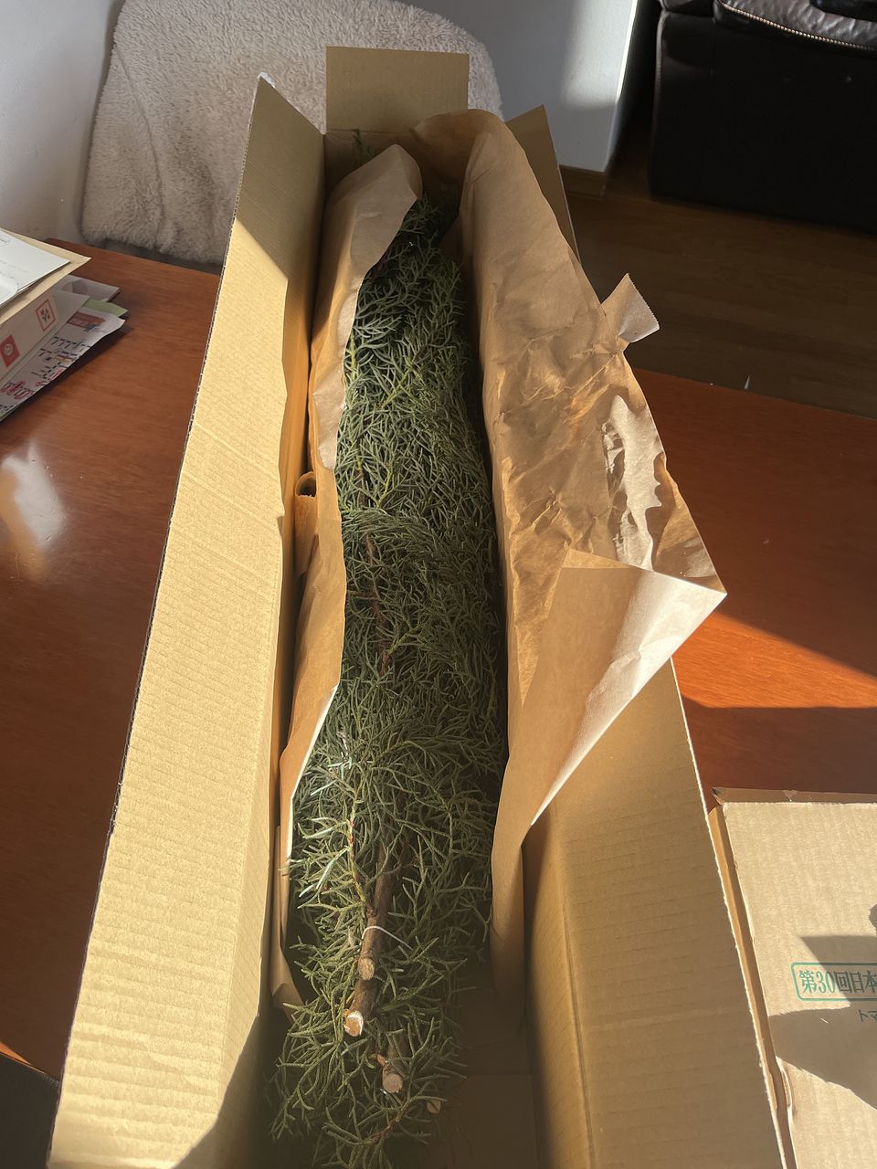 ボリューム満点でクリスマスツリーの代わりにこちらに飾りつけしようと思います。 開けた瞬間清々しい香り何しました。