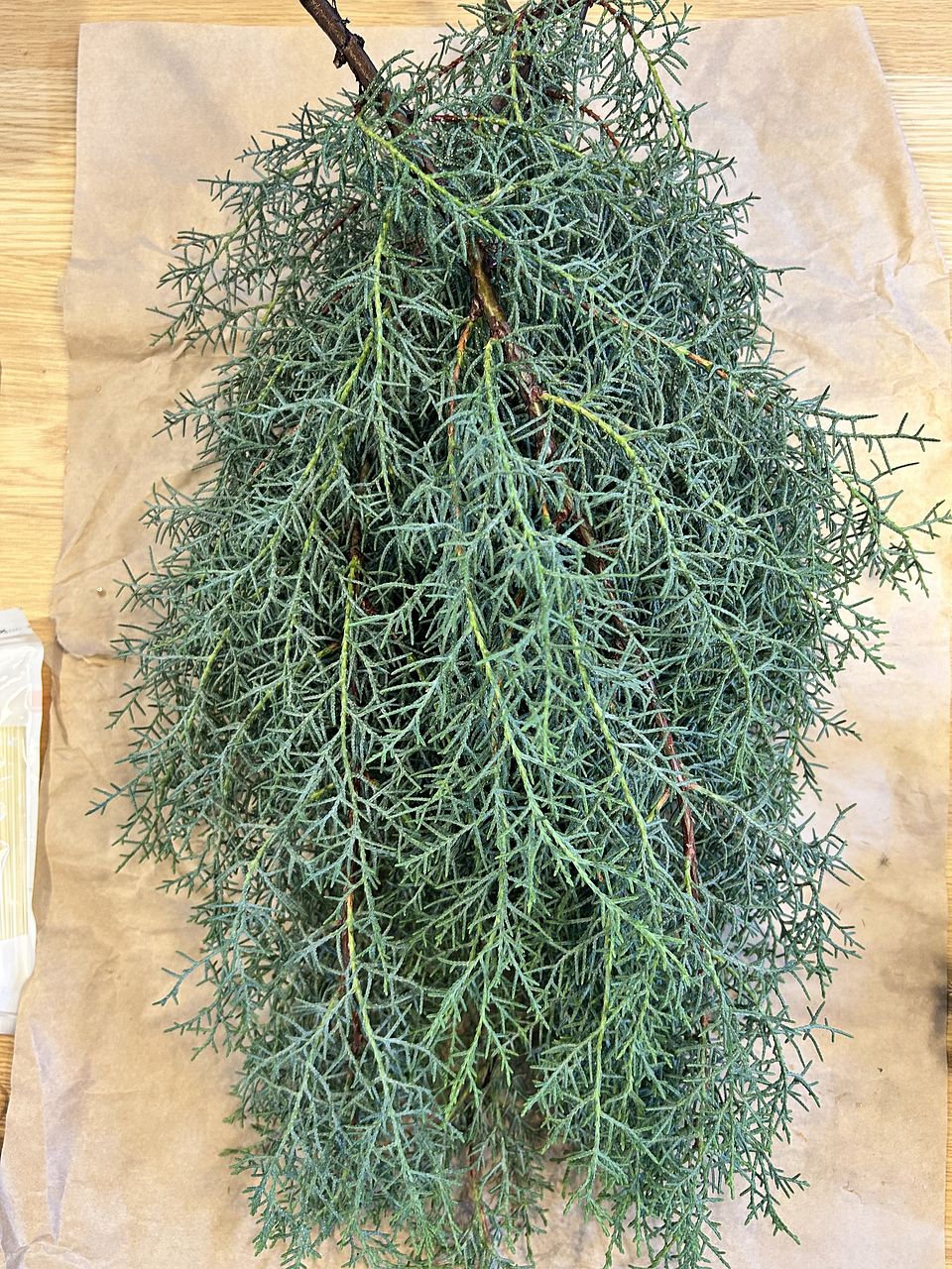 届いた時から、部屋中が森の匂いになり、鼻詰まりが治ってスースーしてきました。全部で4本入っていました。森からきた感が満載で野性味溢れる枝ぶりでどうやって花瓶に生けたり形を整えたりしたらいいのか解らないくらい野性味たっぷりで枝は結構曲がっています。樹液でペトペトするので手袋したほうがよさそうです。小分けにしながらあちこちに飾って楽しみたいと思います。