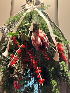開けた瞬間から緑の良い香り ボリュームもすごく、下葉の処理で小さめのスワッグが作れました 欲を言うと赤い実がもうひと枝あっても良かったかなー