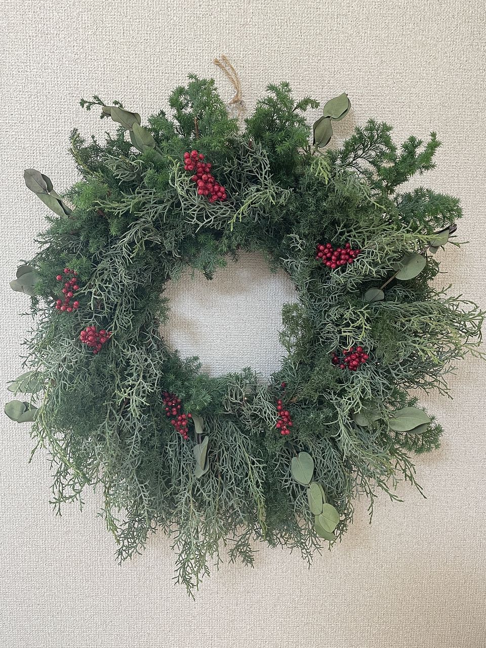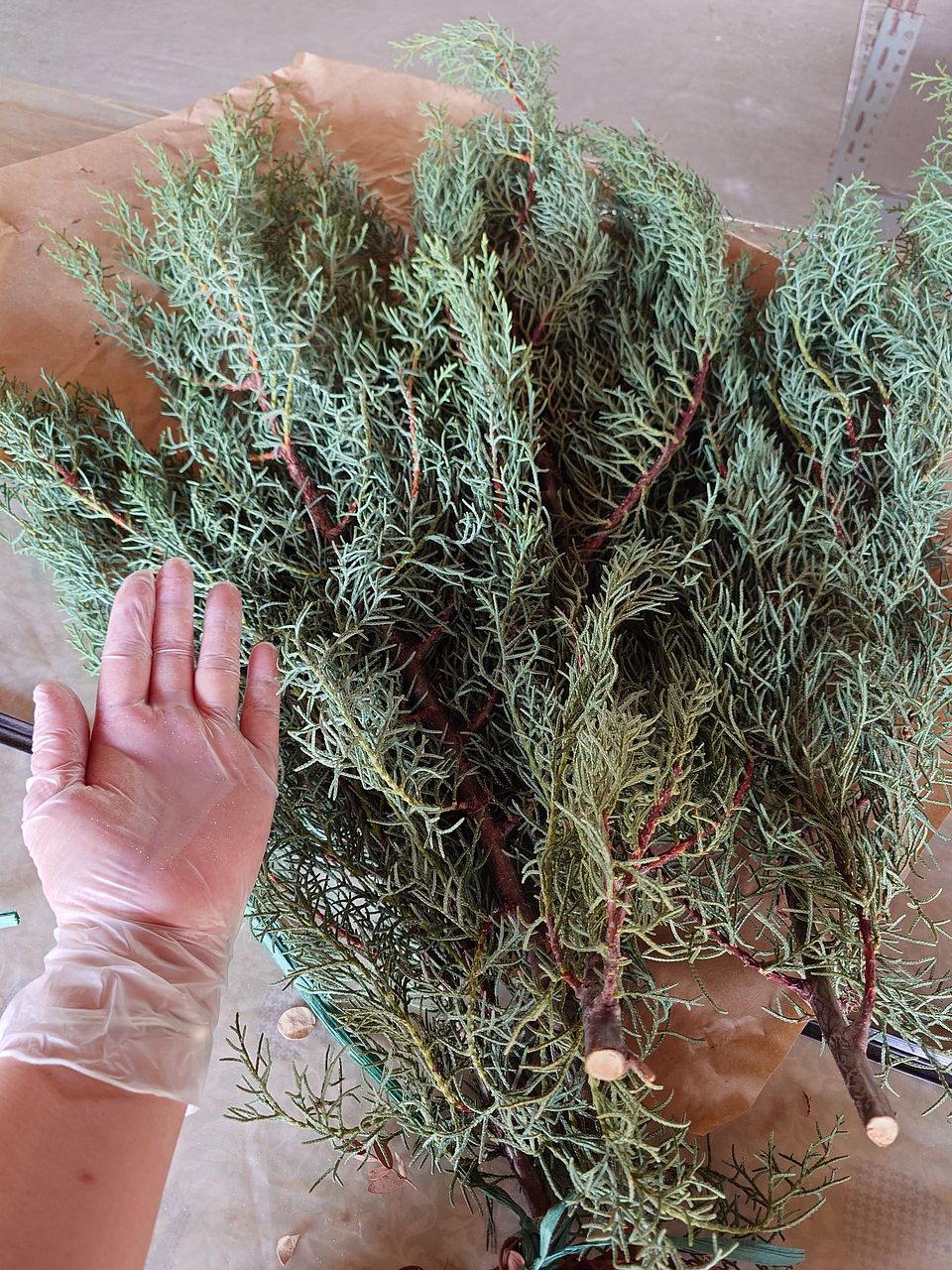 とにかくボリュームがすごくてビックリです。 フレッシュさも素晴らしいのですが、枝ぶりを整えるだけでもリースやスワッグが複数個作れそうな端材が出ます。 一人暮らしだと持て余してしまう量でした。 あと剪定時に樹の成分が周囲に飛び、床や家財がペタペタするので気になる方は新聞紙のご用意を。