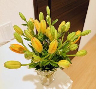 産地直送の百合は保水なしでお届けします。市場からお花屋さんに卸す時と同じ輸送方法なので、品質に問題ありません(「乾式輸送」と呼ばれます)。