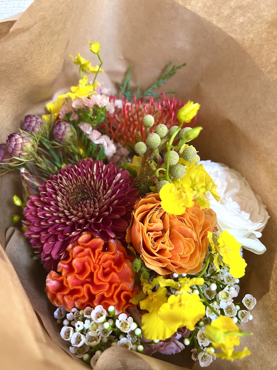 前回インスタライブで見てブーケの雰囲気が大変好みだったのですが購入が間に合わず、今回おまかせとは知りつつ期待して注文してみました。
