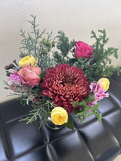 今回のは紫のマムがメインで秋らしく素敵ですが、花材の好みの問題で申し訳ございませんがこちらの評価とさせていただきました。(実際の写真を見た家族からは可愛いと高評価でした)